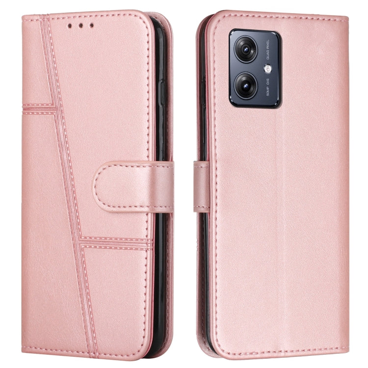 For Motorola Moto G54 Leather Phone Case Buckle Calf Texture Stitching Wallet Cover(Rose Gold)