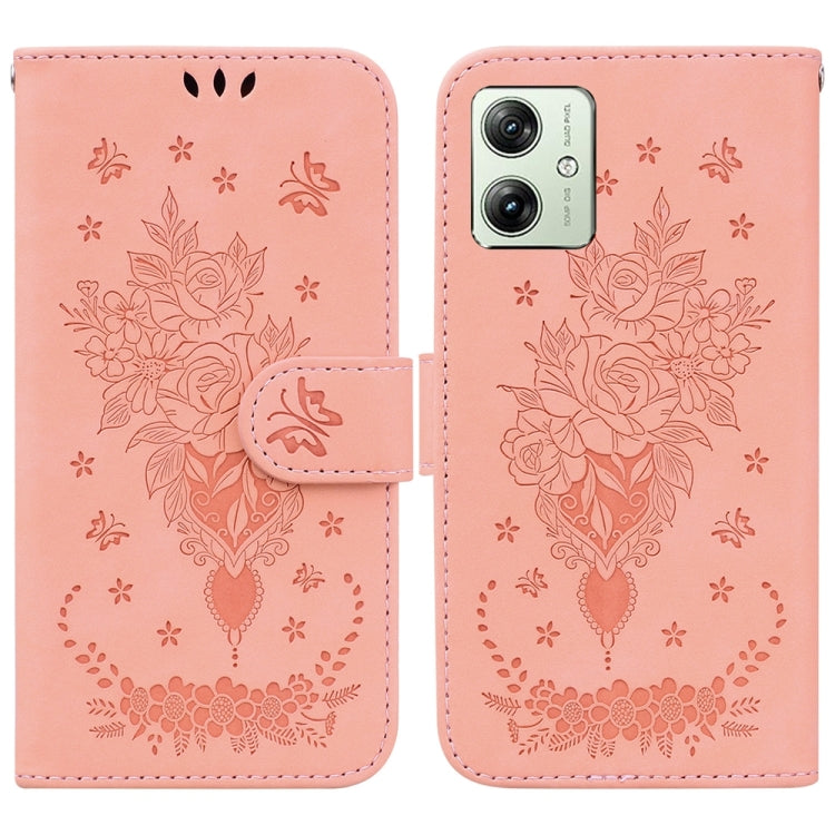 Funda de Cuero para Motorola Moto G54 con Relieve de Mariposa y Rosa (Rosa)