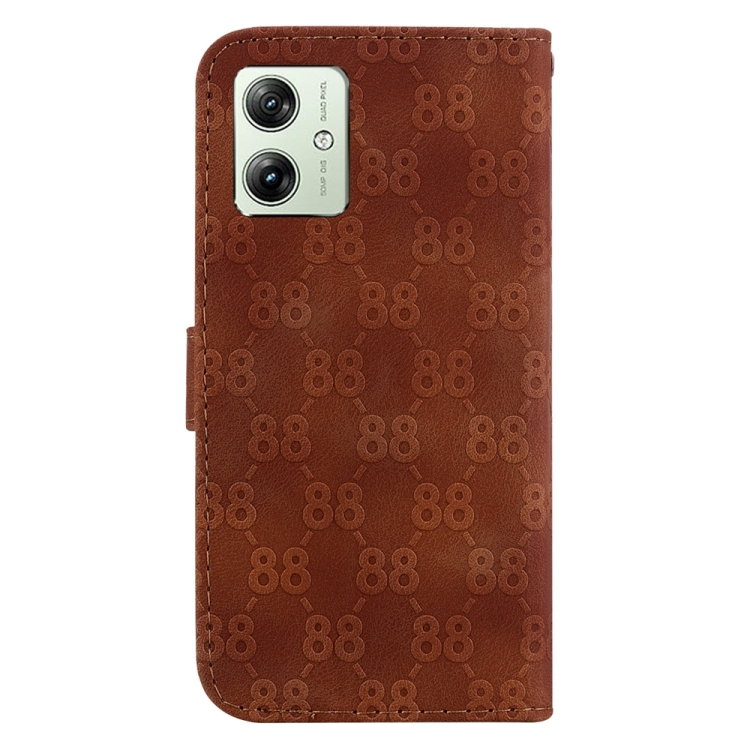 Funda para Motorola Moto G54 de Cuero con Relieve en Forma de 8 Dobles (Marrón)