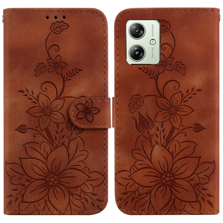 Funda de Teléfono Motorola Moto G54 Lily de Cuero en Relieve (Marrón)