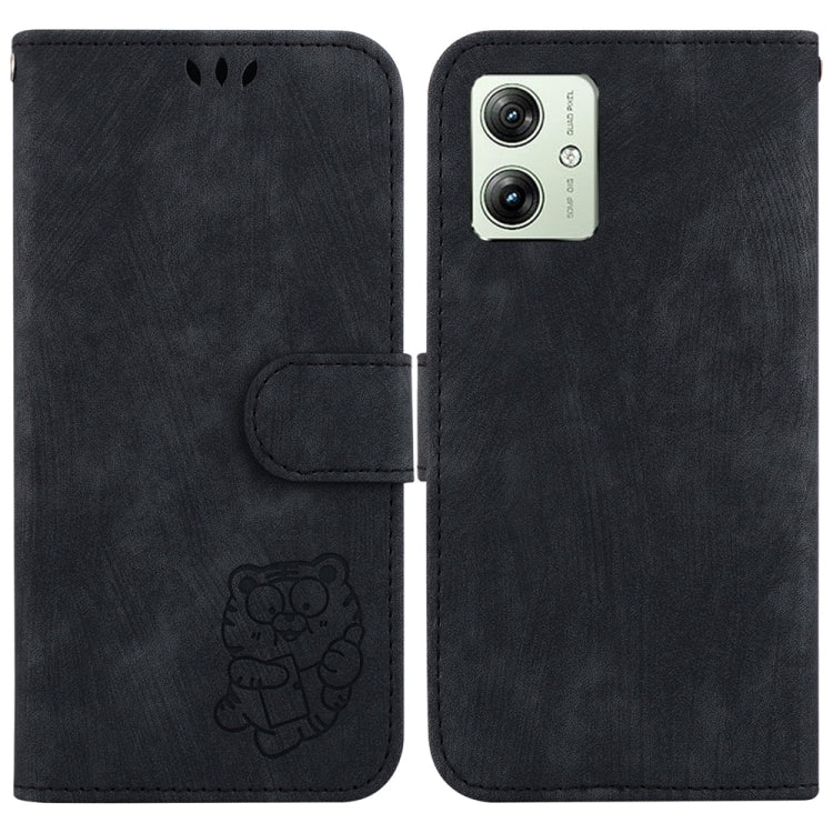 Funda de Cuero para Motorola Moto G54 Little Tiger en Relieve (Negro)