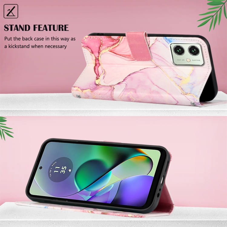 Funda de Cuero para Motorola Moto G54 Pt003 con Tapa y Patrón de Mármol (Ls005)