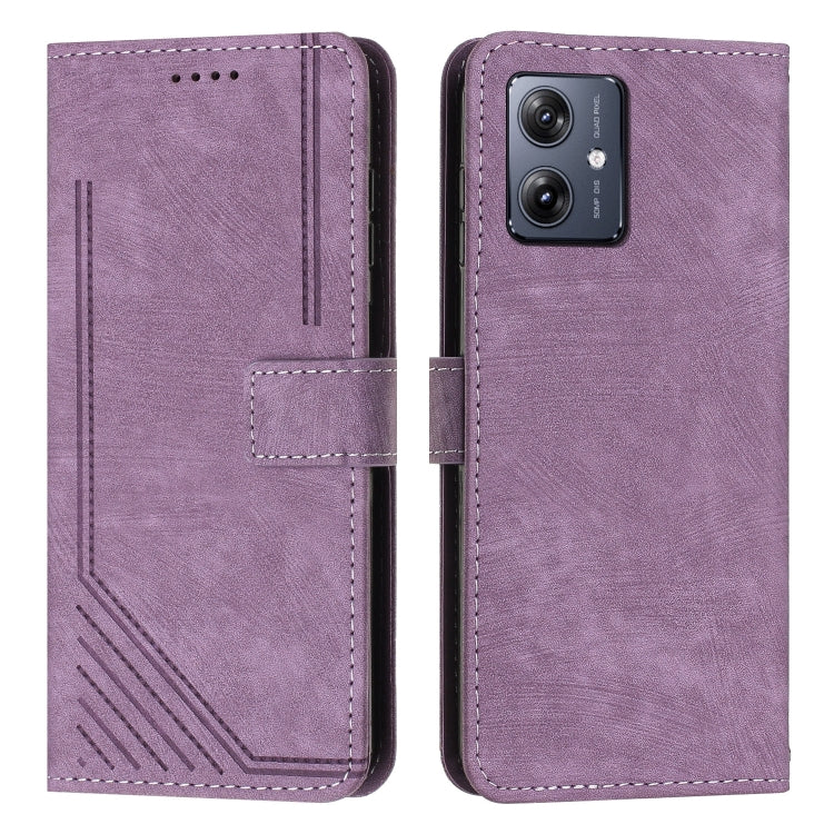 Funda de Cuero para Motorola Moto G54 Skin Feel con Patrón de Rayas y Cordón (Púrpura)