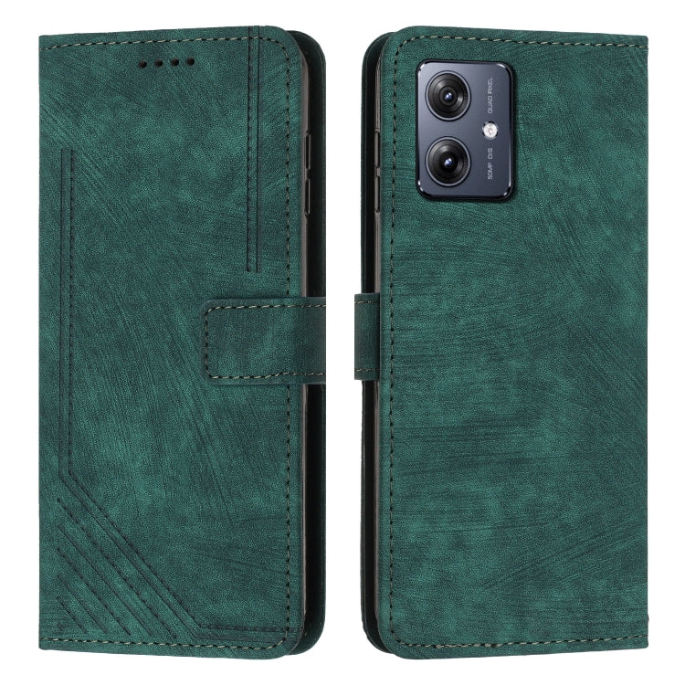 Funda de Cuero Skin Feel para Motorola Moto G54 con Patrón de Rayas y Cordón (Verde)