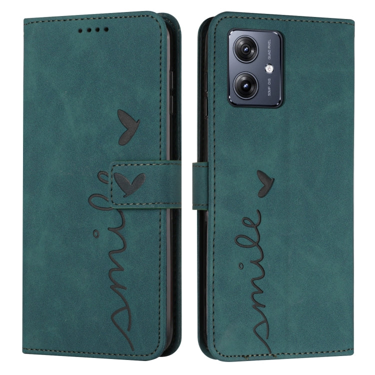 Funda de Cuero Skin Feel Heart para Motorola Moto G54 con Relieve y Cordón Largo (Verde)