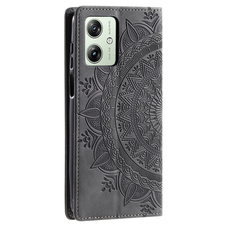 Funda de Cuero Magnética Totem para Motorola Moto G54 en Relieve (Gris)