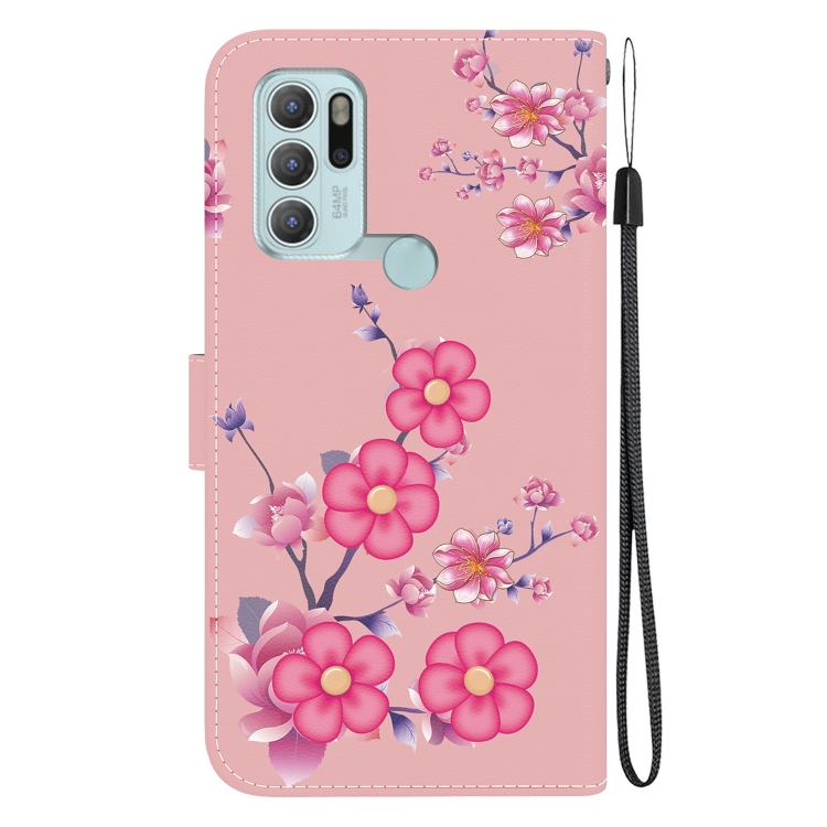 Estuche de Cuero para Motorola Moto G60S con Dibujo Coloreado y Textura de Cristal (Flores de Cerezo)