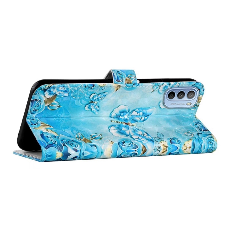 Funda de Cuero para Motorola Moto G62 con Dibujo 3D en Relieve al Óleo (Mariposas Azules)