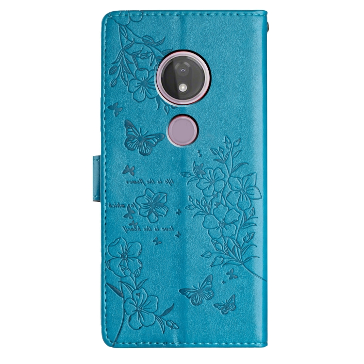 Funda de Cuero para Motorola Moto G7 Power con Mariposas y Flores (Azul)