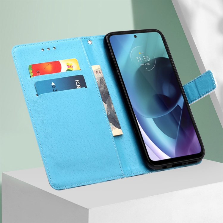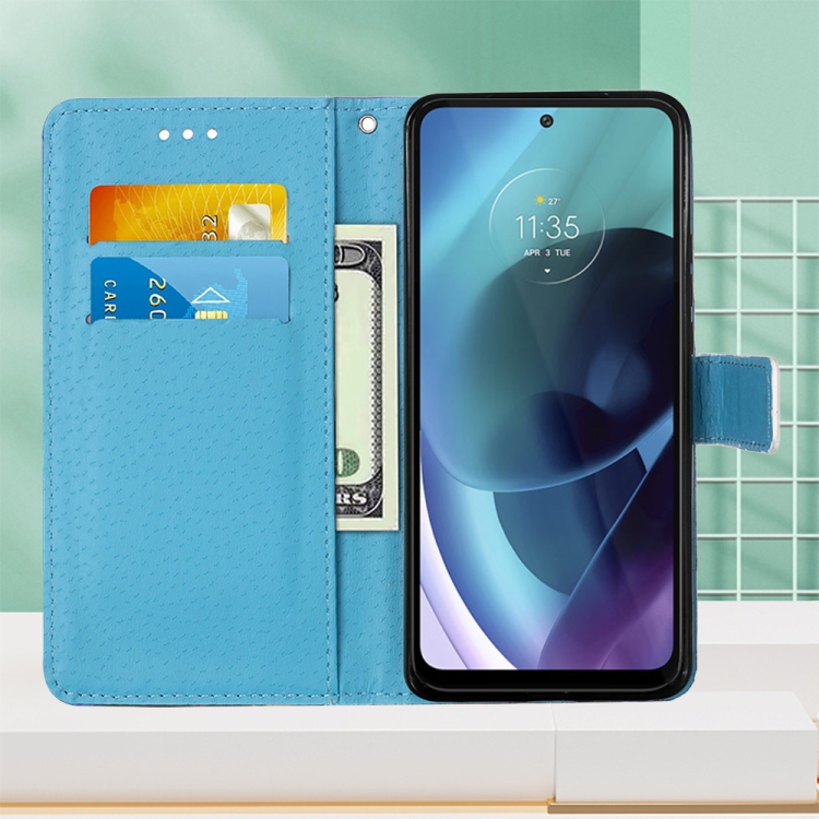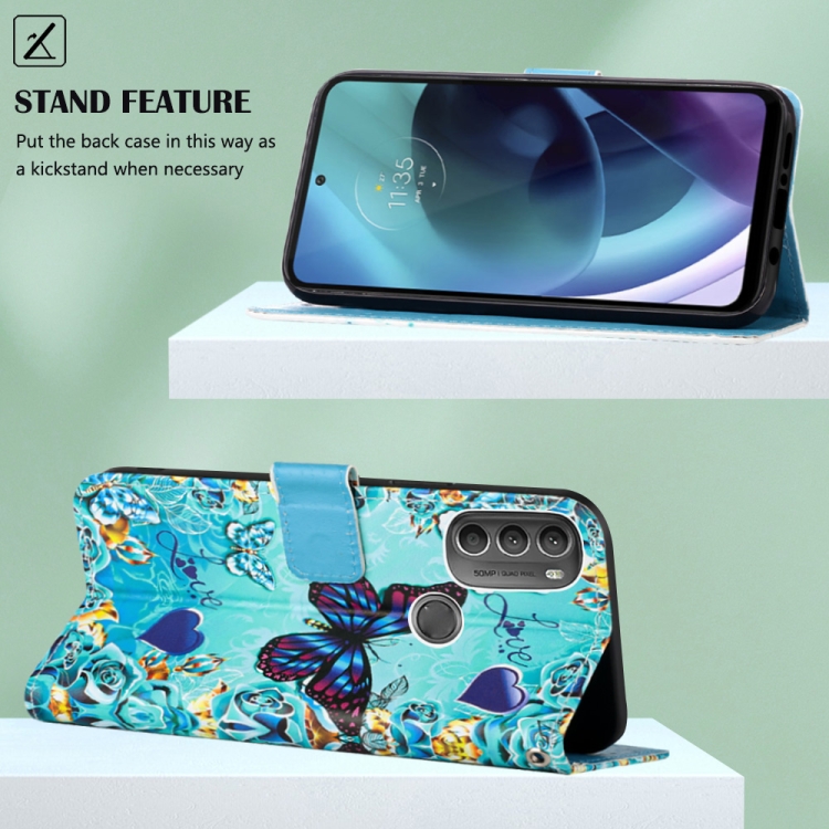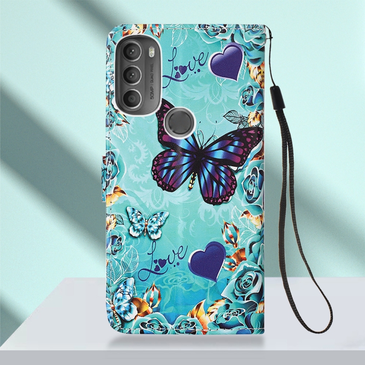 Funda para Motorola Moto G71 5G Cuero Tejido Liso con Dibujo Mariposa Cardíaca
