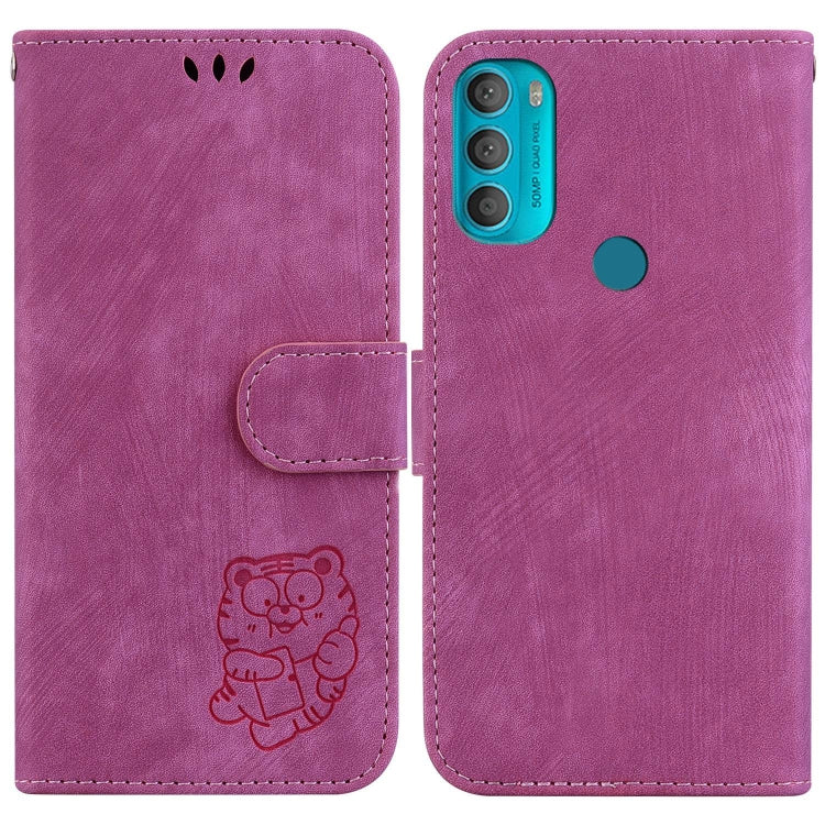 Funda para Motorola Moto G71 5G de Cuero con Relieve Little Tiger (Rojo Rosa)
