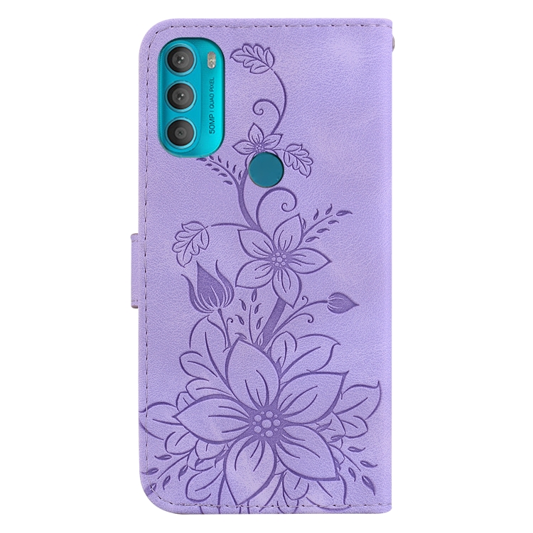 Funda de Cuero en Relieve para Motorola Moto G71 5G Lily (Púrpura)