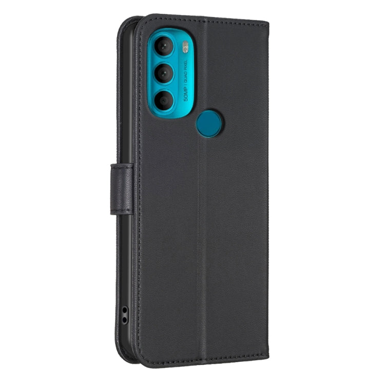 Funda de Cuero para Motorola Moto G71 con Relieve de Cuatro Hojas (Negro)