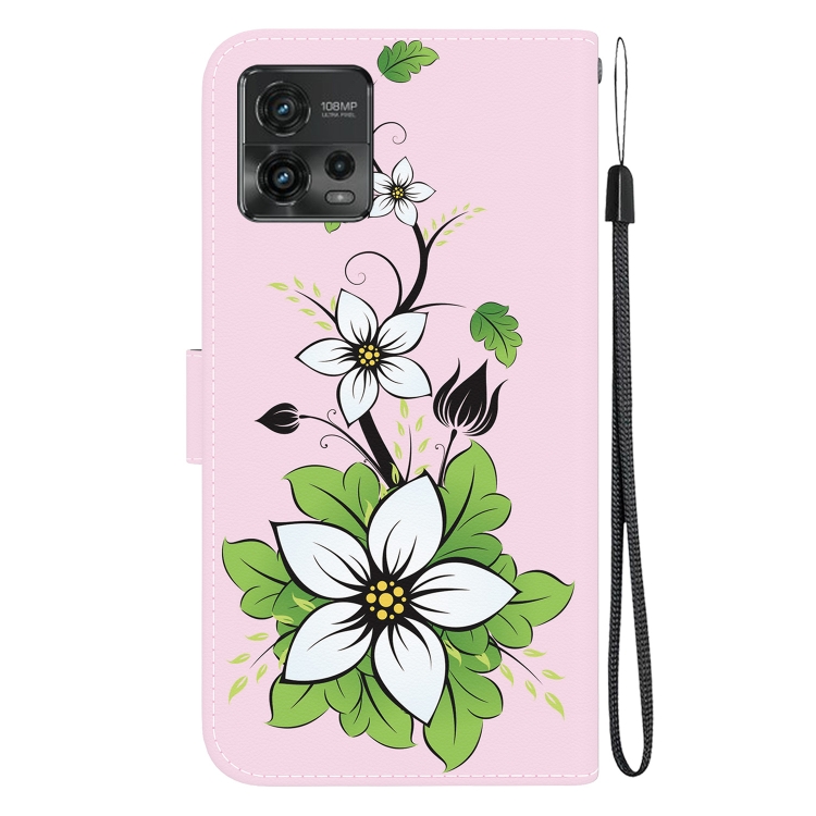 Funda de Cuero Motorola Moto G72 con Dibujo Coloreado y Textura de Cristal (Lirio)