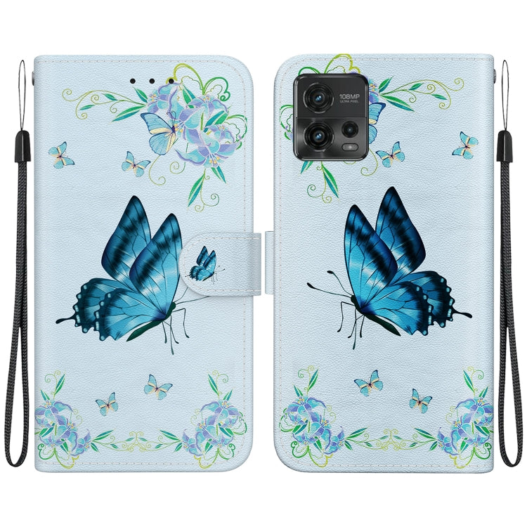 Funda de Cuero para Motorola Moto G72 con Dibujo Coloreado y Textura de Cristal (Pensamientos Azules)