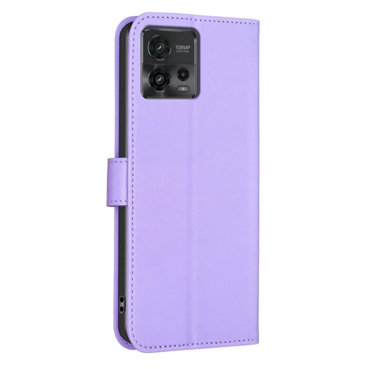 Funda de Cuero para Motorola Moto G72 con Relieve de Cuatro Hojas (Púrpura)