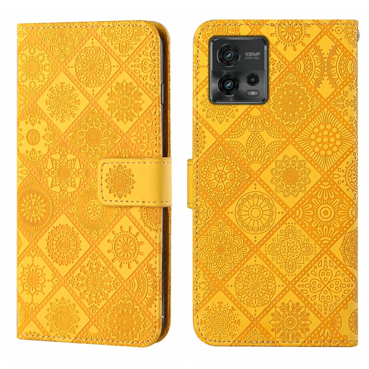 Funda de Cuero para Motorola Moto G72 con Patrón en Relieve Estilo Étnico (Amarillo)