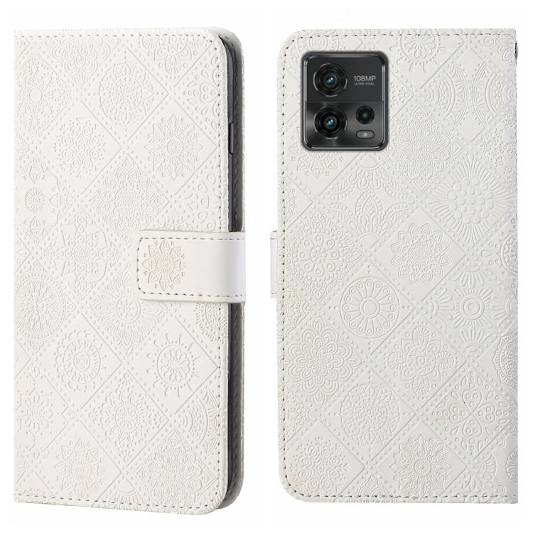 Funda de Cuero para Motorola Moto G72 con Patrón en Relieve de Estilo Étnico (Blanco)