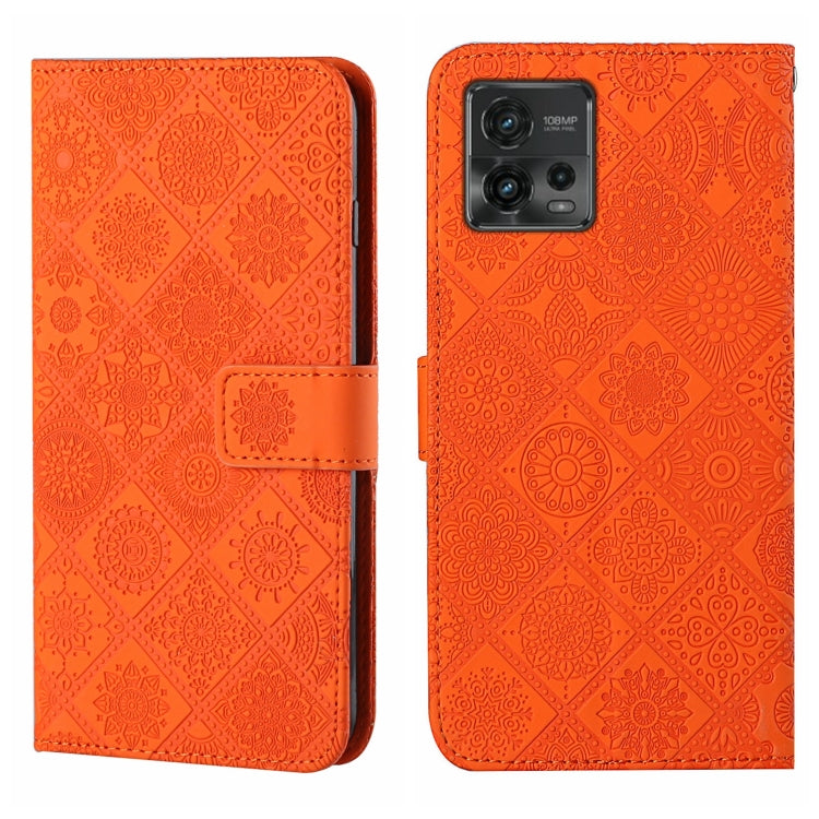 Funda de Cuero para Motorola Moto G72 con Patrón en Relieve Estilo Étnico (Naranja)