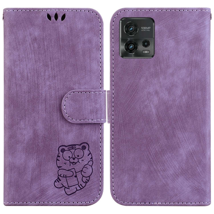 Funda para Teléfono Motorola Moto G72 Cuero con Relieve Little Tiger (Púrpura)