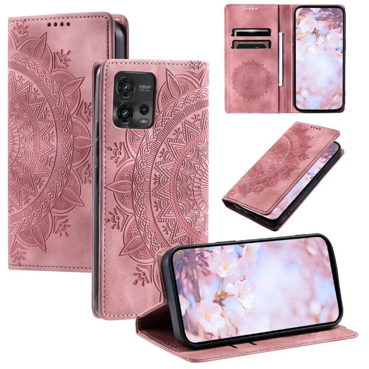 Funda de Cuero Magnética Totem para Motorola Moto G72 en Relieve (Oro Rosa)