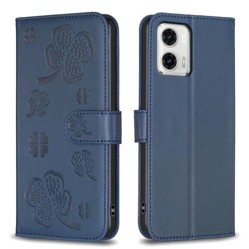 Funda para Motorola Moto G73 5G de Cuero con Relieve de Cuatro Hojas (Azul)