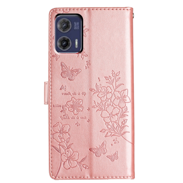 Funda de Cuero para Motorola Moto G73 con Mariposas y Flores (Oro Rosa)