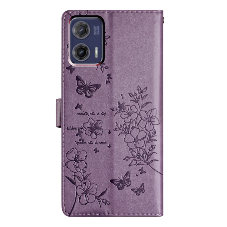 Funda de Cuero para Motorola Moto G73 con Mariposas y Flores (Púrpura)