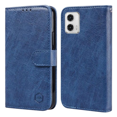 Funda para Motorola Moto G73 con Sensación de Piel Aceite Textura de Cuero PU y TPU (Azul Oscuro)