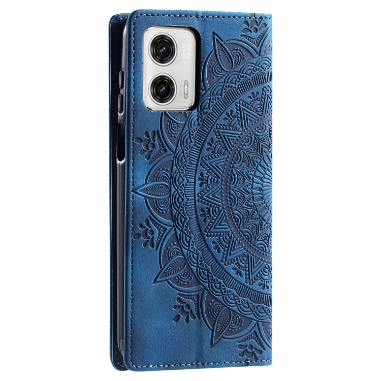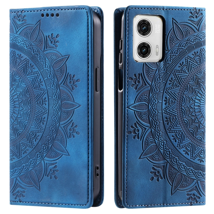 Funda de Cuero Magnética Totem para Motorola Moto G73 en Relieve (Azul)