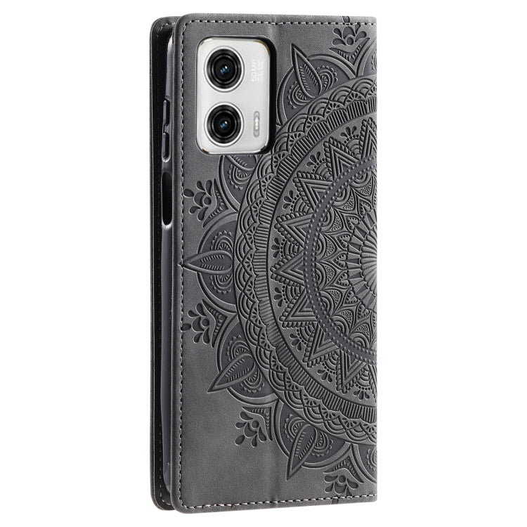 Funda de Cuero Magnética en Relieve para Motorola Moto G73 Totem (Gris)