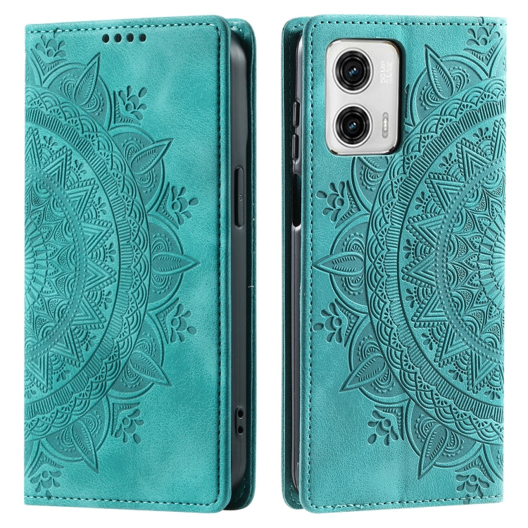 Funda de Cuero Magnética para Motorola Moto G73 Totem en Relieve (Verde)