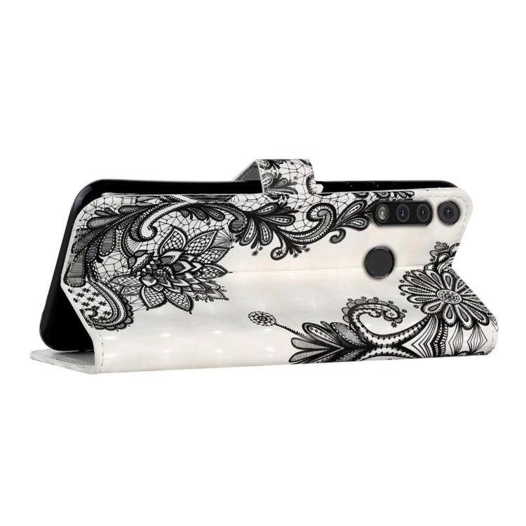 Funda de Cuero para Motorola Moto G8 Play con Dibujo 3D en Relieve al Óleo (Flor de Encaje)