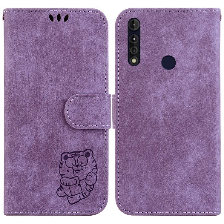 Funda para Motorola Moto G8 Power Lite de Cuero con Relieve Little Tiger (Púrpura)