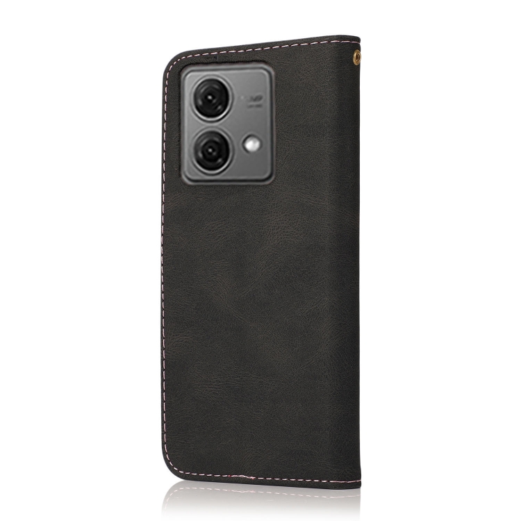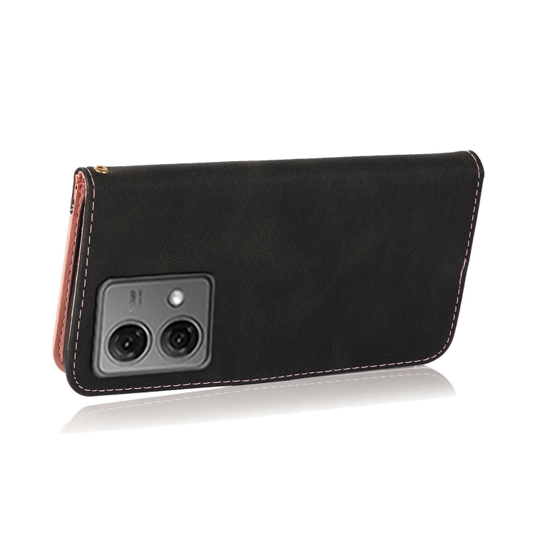 Funda de Cuero para Motorola Moto G84 5G con Costuras de Dos Colores (Oro Rosa Negro)
