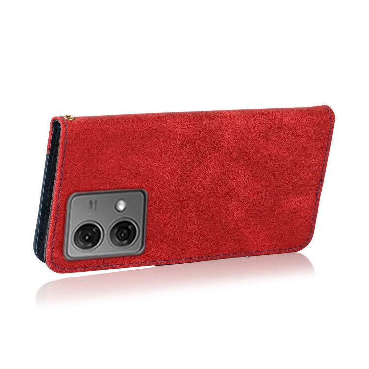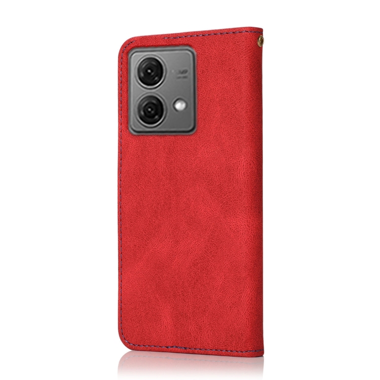 Funda de Cuero para Motorola Moto G84 5G con Costuras de Dos Colores (Rojo Azul)