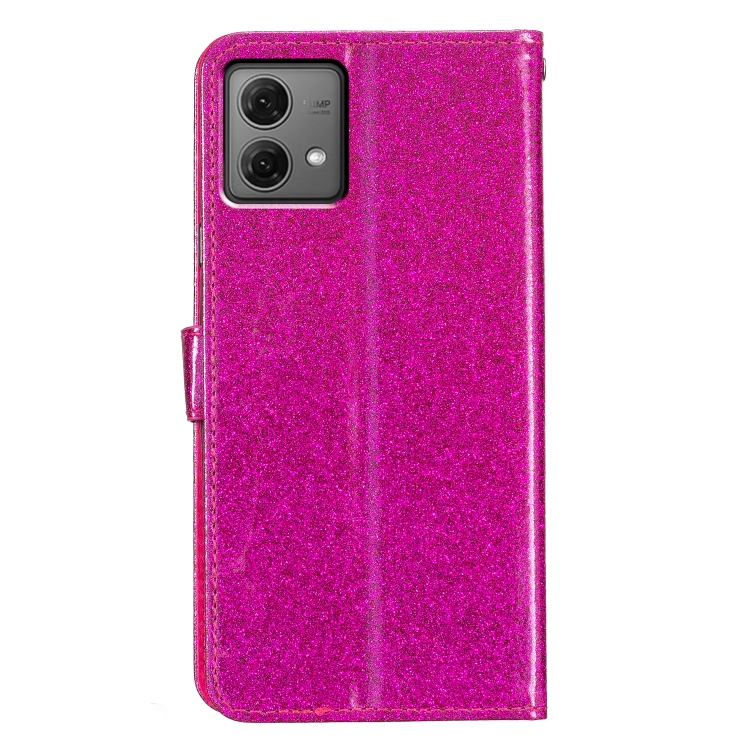 Funda de Cuero con Tapa y Purpurina para Motorola Moto G84 5G (Rojo Rosa)