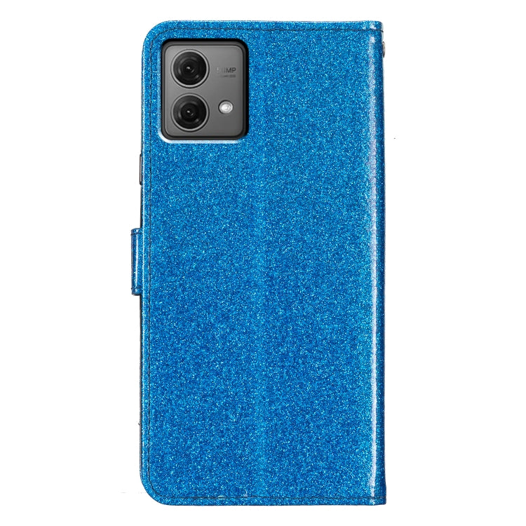 Funda de Cuero para Motorola Moto G84 5G con Tapa en Polvo y Purpurina (Azul)