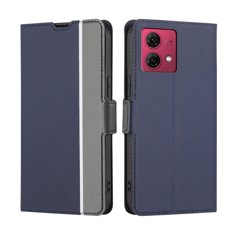 Funda de Cuero para Motorola Moto G84 5G con Botón Lateral y Textura de Sarga (Azul)