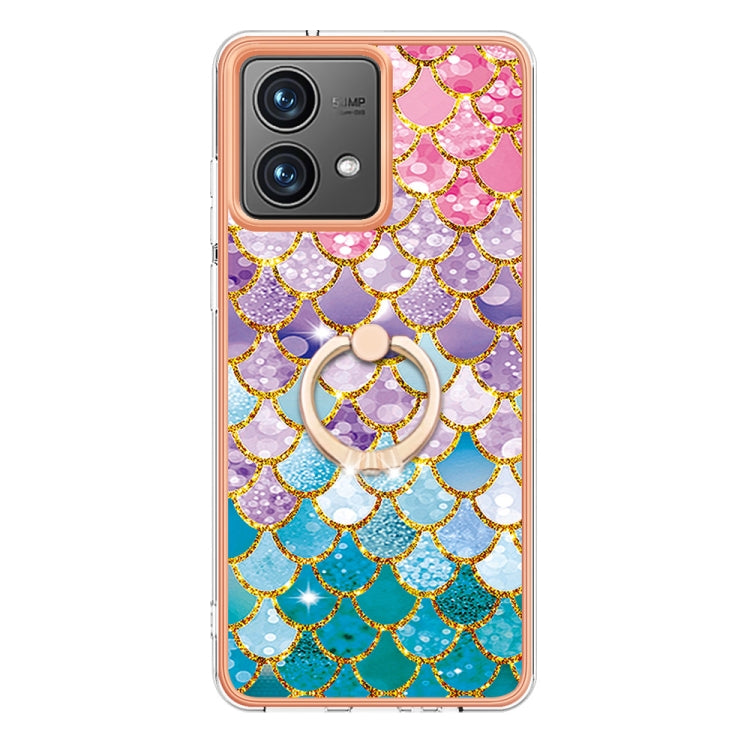 Funda para Motorola Moto G84 IMD TPU con Galvanoplastia y Anillo (Escamas de Colores)
