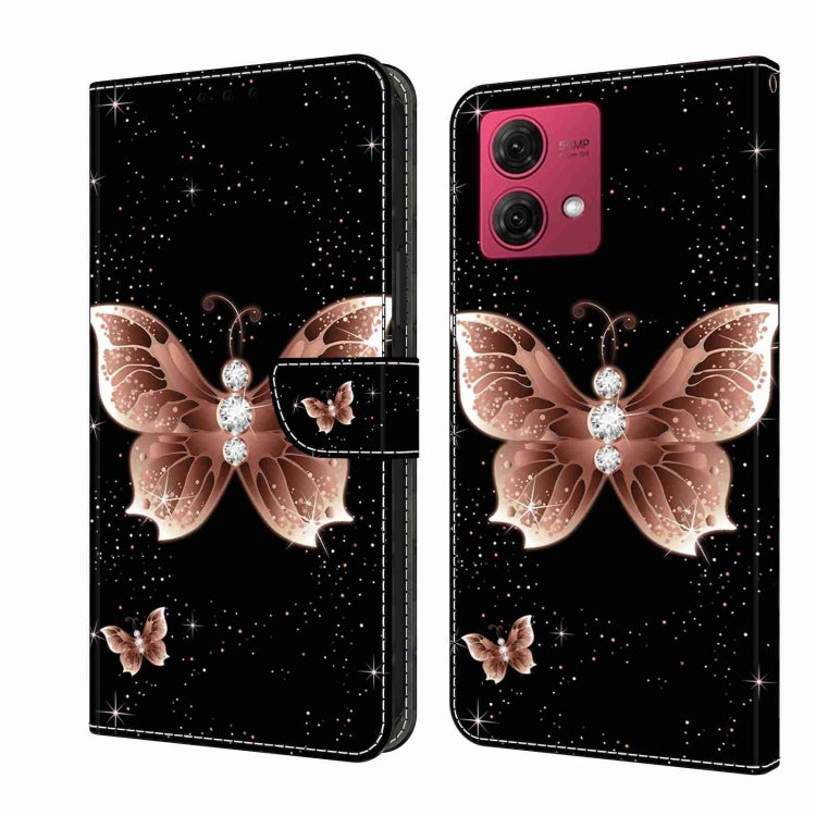 Funda Protectora de Cuero para Motorola Moto G84 Crystal 3D a Prueba de Golpes (Mariposa de Diamante Rosa)