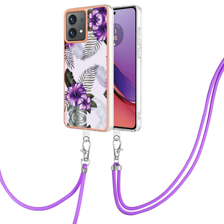 Estuche para Motorola Moto G84 TPU Imd con Galvanoplastia y Cordón (Flor Púrpura)