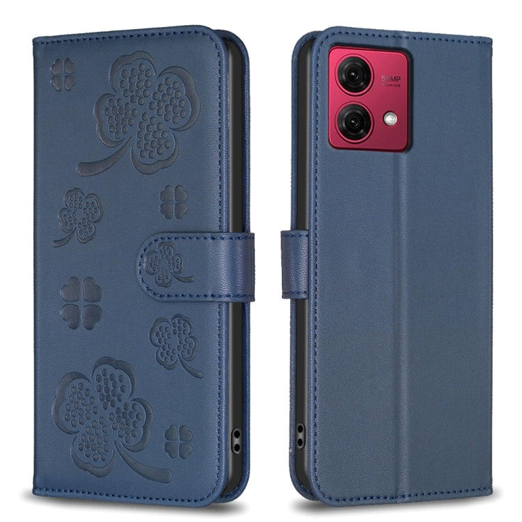 Funda de Cuero para Motorola Moto G84 con Relieve de Cuatro Hojas (Azul)