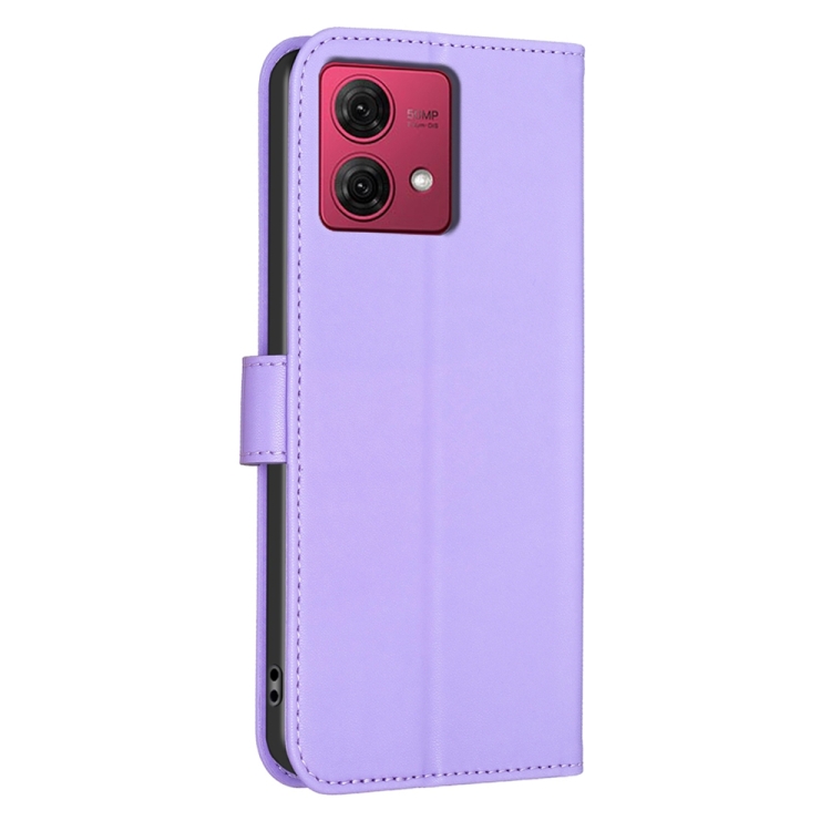 Funda de Cuero para Motorola Moto G84 con Relieve de Cuatro Hojas (Púrpura)