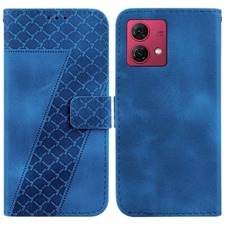 Funda de Cuero para Motorola Moto G84 con Relieve en Forma de 7 (Azul)