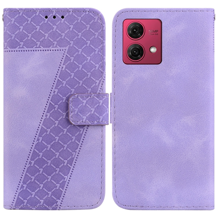Funda de Cuero para Motorola Moto G84 con Relieve en Forma de 7 (Púrpura)
