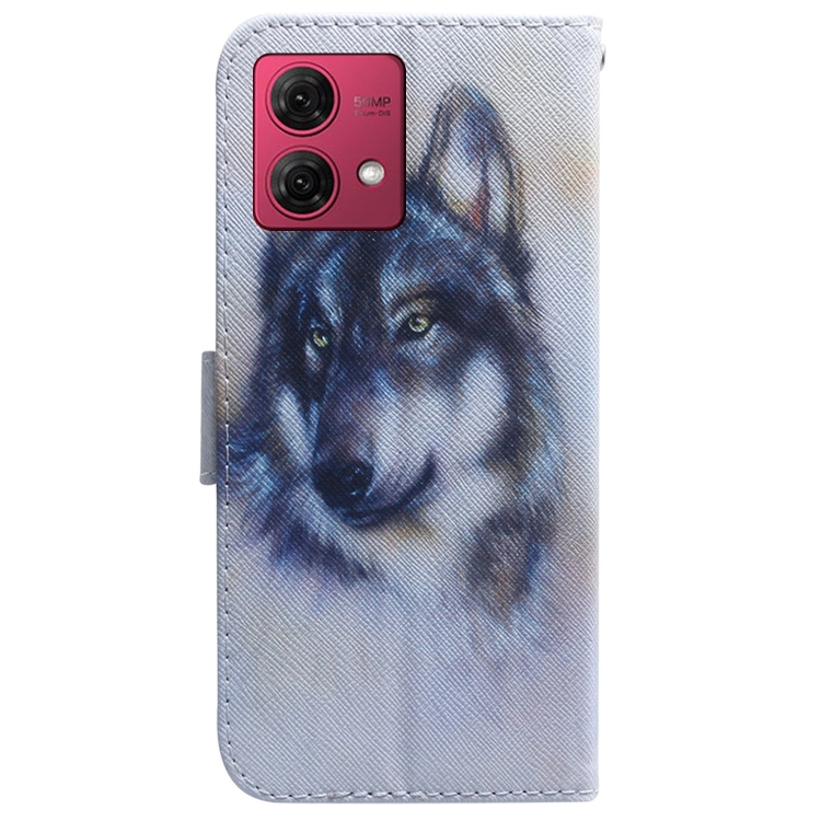 Funda de Cuero con Tapa para Motorola Moto G84 con Dibujo Coloreado (Lobo Blanco)