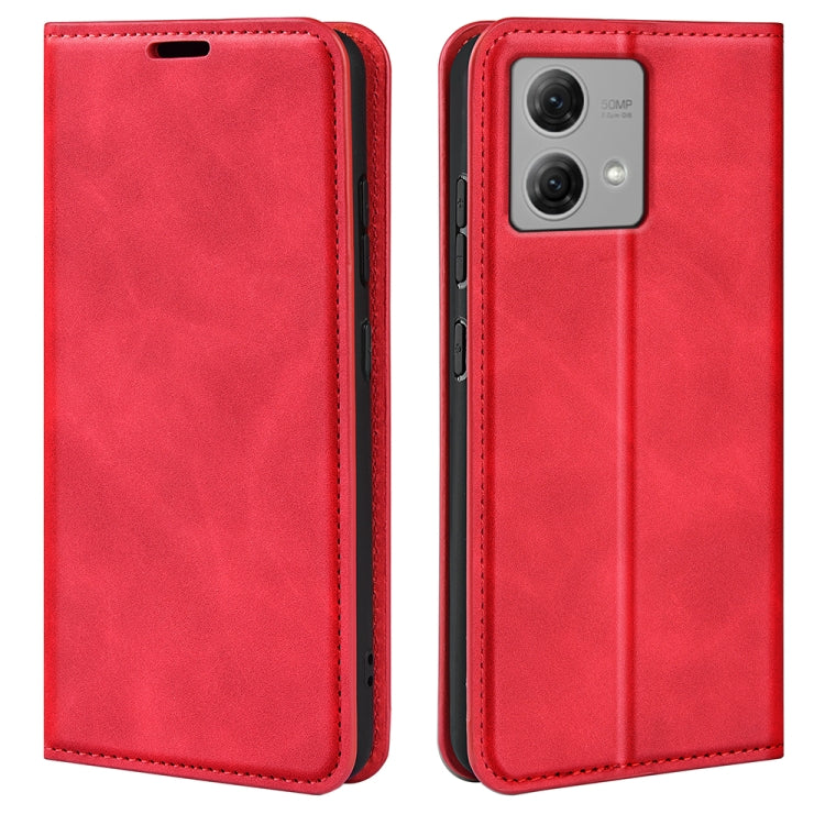 Funda de Cuero para Motorola Moto G84 con Succión Magnética de Piel Retro (Rojo)