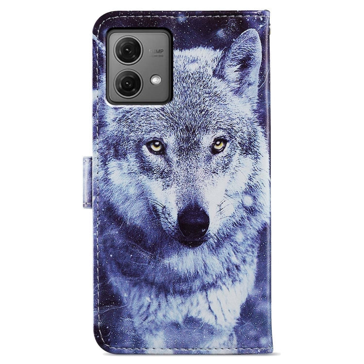 Funda de Cuero para Motorola Moto G84 con Tapa Horizontal y Patrón Pintado (Lobo Blanco)