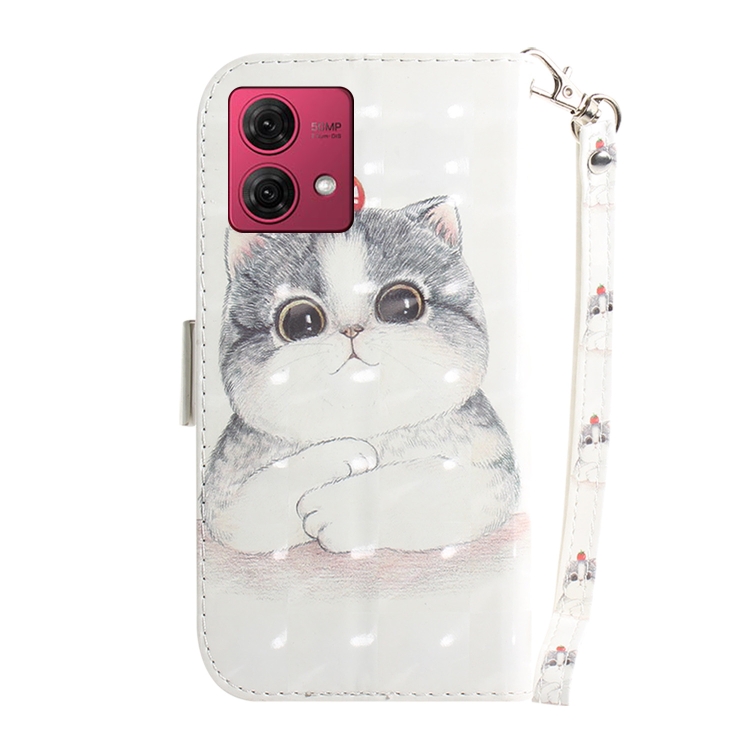 Funda de Cuero para Motorola Moto G84 con Tapa Horizontal y Diseño 3D (Lindo Gato)